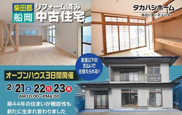 2/21(土)~23(祝・月)開催 柴田郡船岡・リフォーム済み中古住宅オープンハウス