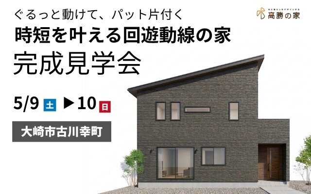 5/9(土)、10(日)開催【大崎市古川】「ぐるっと動けて、パッと片付く『時短を叶える回遊動線の家』」完成見学会 ※事前予約制
