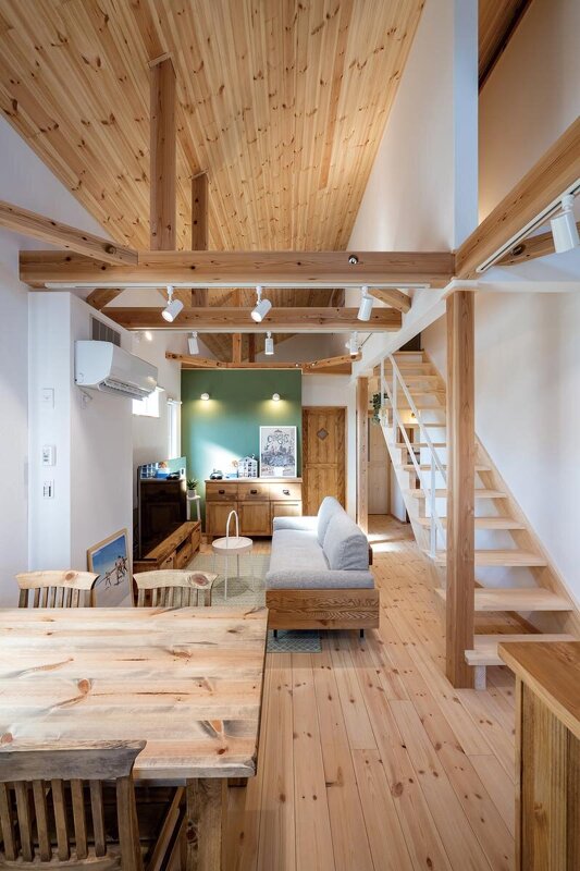 可能な限り天井を開放することで空気が循環し、室温が一定に保たれる。高性能住宅ならではの発想。