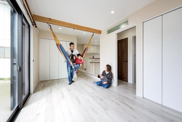 部屋のような中庭は音が外に漏れず、周囲を気にせずBBQや子どものダンスを楽しむなど日々の生活に欠かせない憩いの場。家で過ごす時間と共に家族の笑顔も増えたとか。