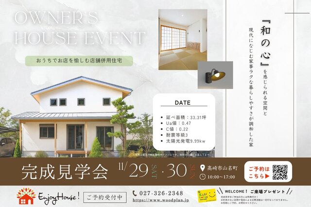 見学会のご予約はHPイベント案内→https://www.woodplan.jp/kenngaukai.html