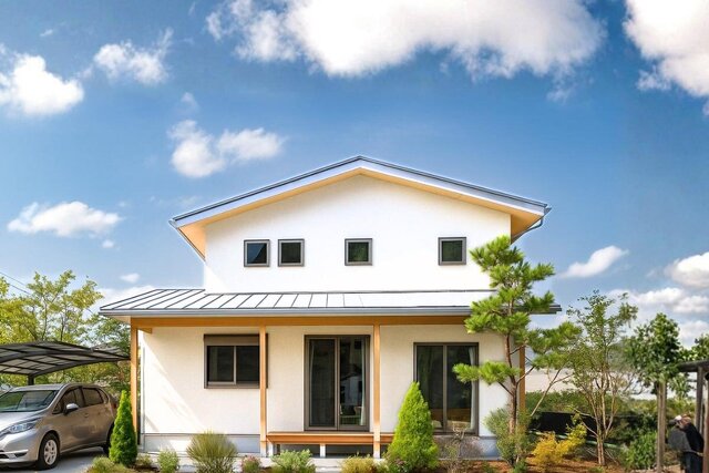 01.無添加漆喰とヒノキ材を使用し、落ち着いた佇まいの外観