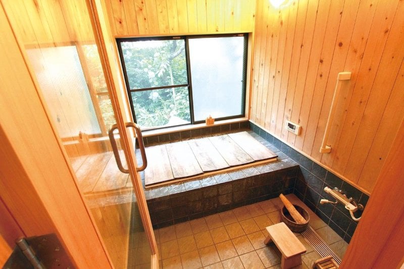 木肌の優しい感触に包まれて、心から癒される風情豊かな風呂。